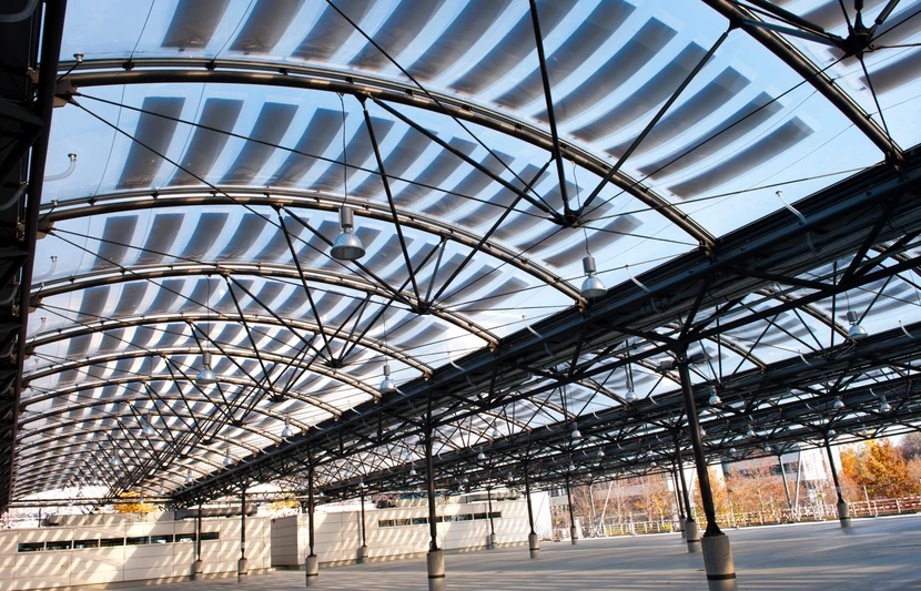 Errichtung – Stahlbau und pneumatische Überdachung mit integrierter Photovoltaikanlage