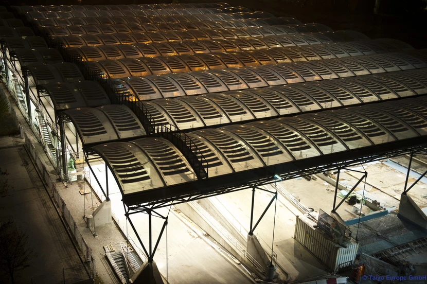 Projektleitung durch Wika Pösl beim Wiederaufbau des Carportdaches mit integrierter Photovoltaikanlage auf dem Gelände der Zentrale des Abfallwirtschaftsbetriebes in München für die Taiyo Europe GmbH